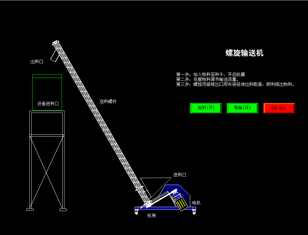 該機是利用電機帶動螺旋回轉,推動物料以實現輸送的機械。