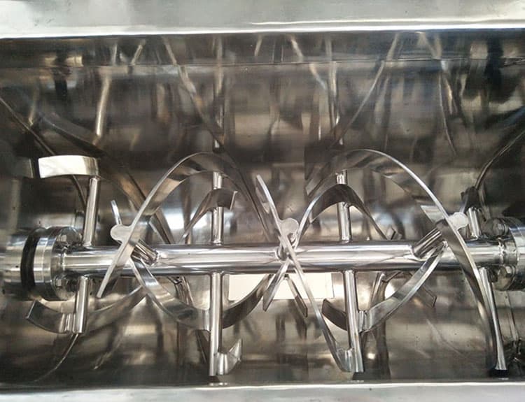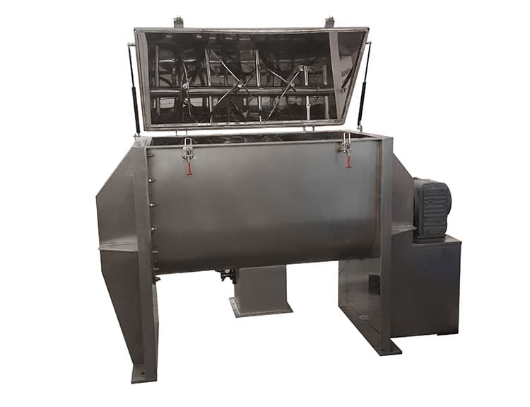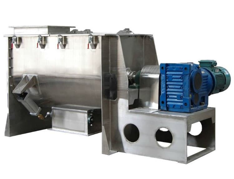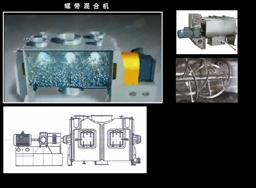 臥式螺帶混合機(jī)由U形容器、螺帶攪拌葉片和傳動部件組成;螺帶狀葉片一般做成雙層或三層,外層螺旋將物料從兩側(cè)向中央?yún)R集,內(nèi)層螺旋將物料從中央向兩側(cè)輸送,形成對流混合。螺帶混合機(jī)對于粘性或有凝聚性的粉粒體的混合以及粉粒體中添加液體及糊狀物料的混合有良好的效果,筒蓋可做成全開式門,以便對于設(shè)備進(jìn)行清洗更換產(chǎn)品。