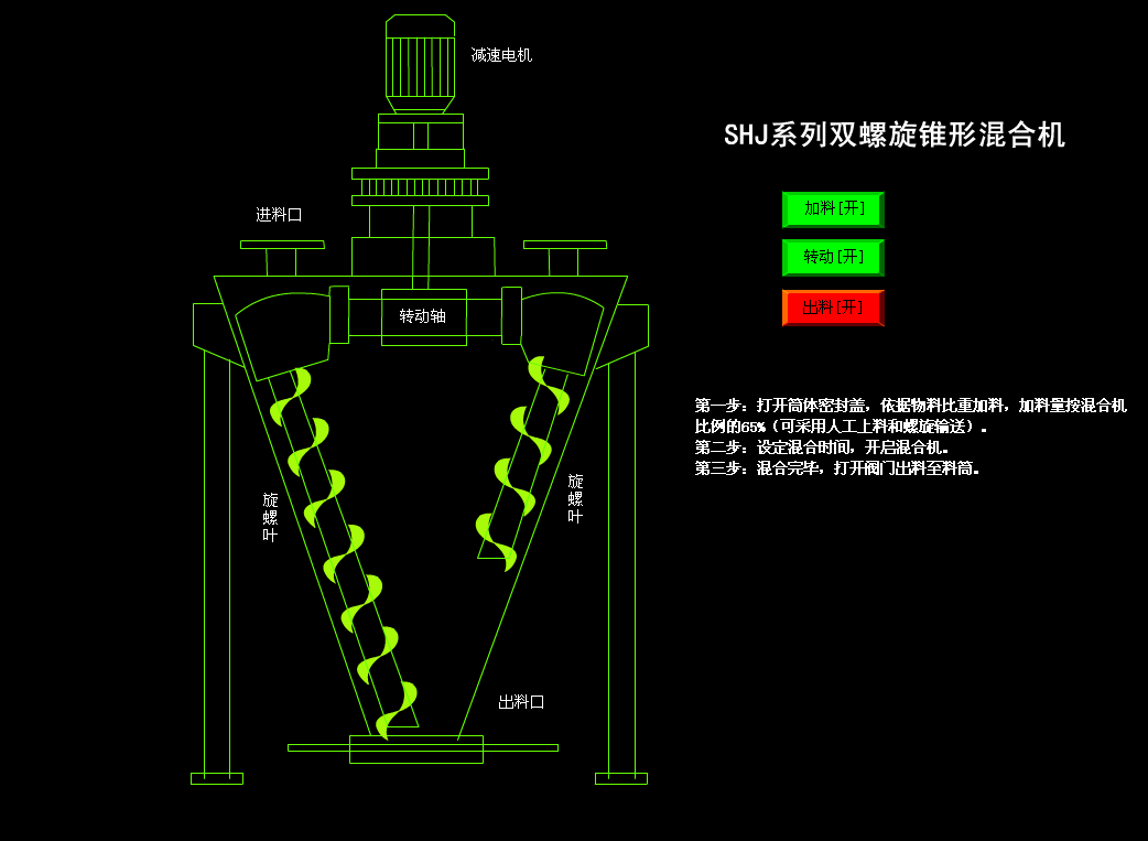 該機(jī)為單螺桿加S式漿葉組合而成,攪拌范圍大,混合速度快。無(wú)死角、對(duì)比重懸殊、混配比懸殊的物料混合更為適合。