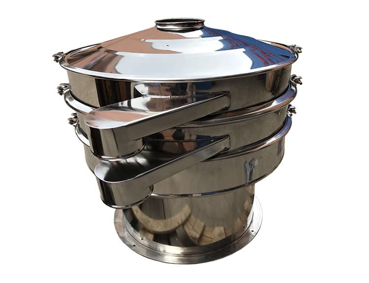 This machine is composed of vertical vibration motor,a sieve bottom, a mesh frame, sieve room,rubber vibrating bowl, and all fastening pieces.